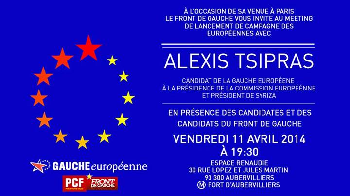 Front de Gauche, the French alliance of the Left is kick starting its campaign for the European elections on Friday in Aubervilliers. In Renaudie venue, Alexis Tsipras, president of SYRIZA in Greece and candidate for the European Commission on behalf of the European Left party (GUE/NGL) will give an open speech at the opening of the campaign at 19:30.