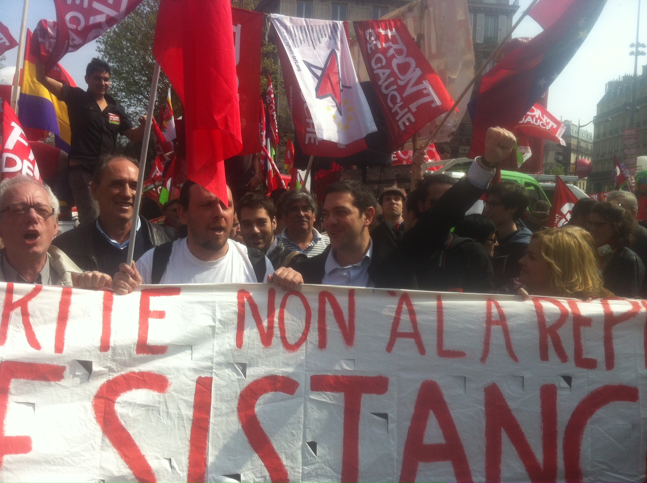A mass demonstration, “Contre l’austérité, pour l’égalité et le partage des richesses” (against austerity, for equality, and sharing wealth) is taking place in Paris, organized by the French Left. Alexis Tsipras, President of SYRIZA and the European Left's candidate for President of the European Commission, is marching alongside the crowds, as they protest against the austerity policies of French President François Hollande, and those in place across Europe.